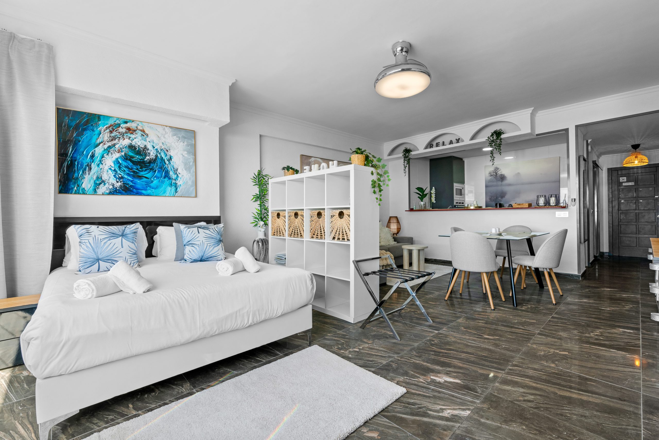 Este apartamento completamente renovado, equipado con una cama doble y un sofá cama, es el lugar ideal para sus vacaciones o un fin de semana en Marbella. Dotado de todas las comodidades esenciales —cocina moderna y funcional, lavadora, armario, baño completo y un salón luminoso con sofá cama— es perfecto tanto para estancias cortas como para alquileres de más larga duración. Los servicios de wifi, agua y electricidad están incluidos, para una total tranquilidad.
